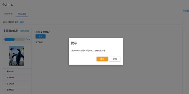 应聘者个人填报,可以填写应聘者个人简历信息。