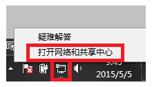 1.在桌面右下角intelnet连接符号鼠标右键点击,点击打开网络和共享中心: