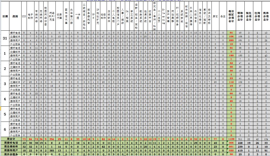 运行服务值班基本数据如下所示: