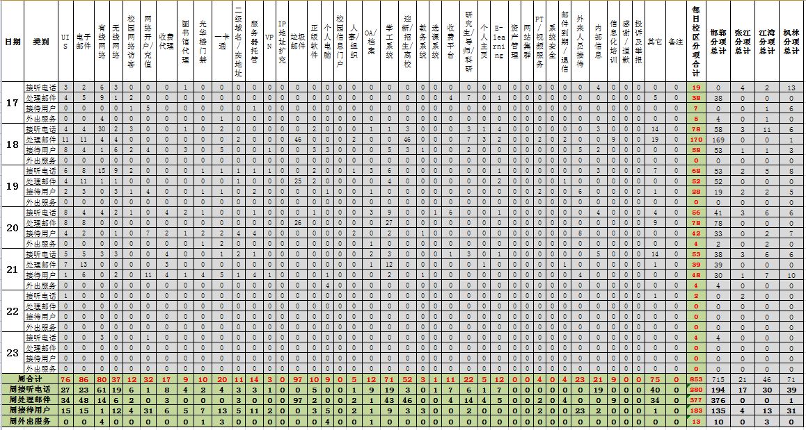 运行服务值班数据统计周报【2011年10月17日-10月23日】