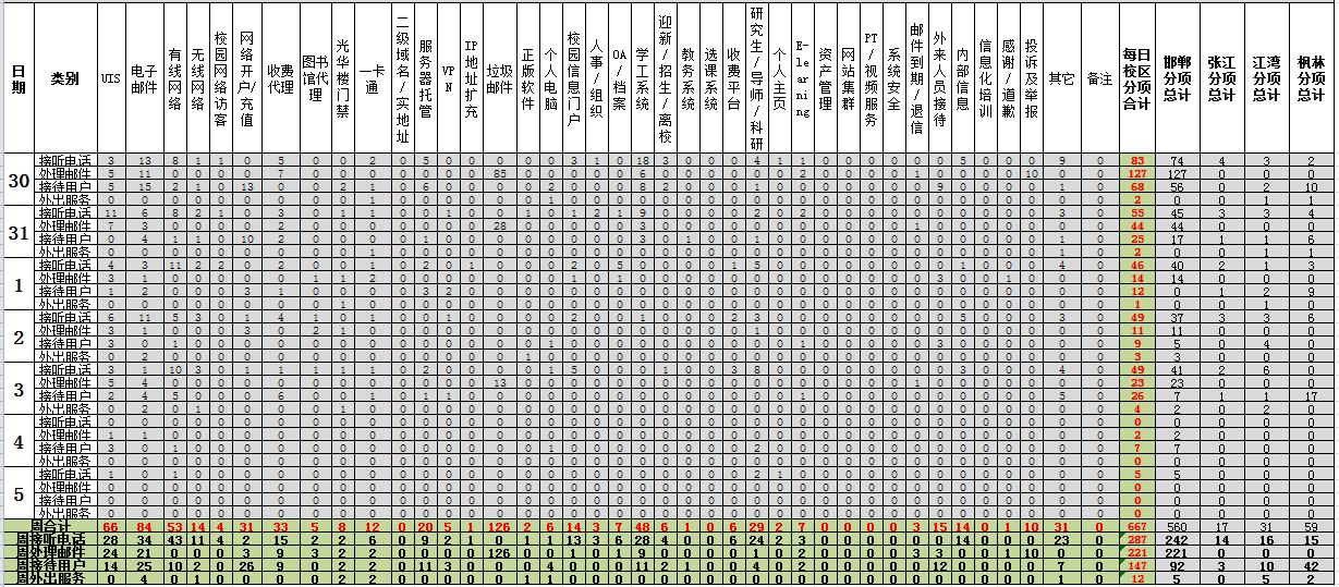 运行服务值班基本数据如下所示: