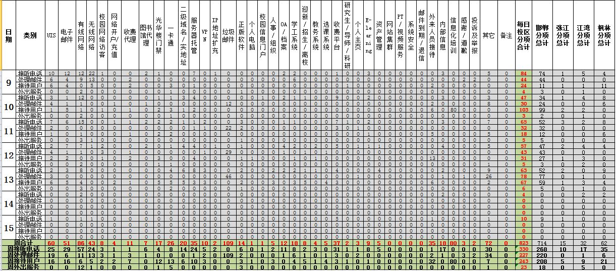 运行服务值班基本数据如下所示: