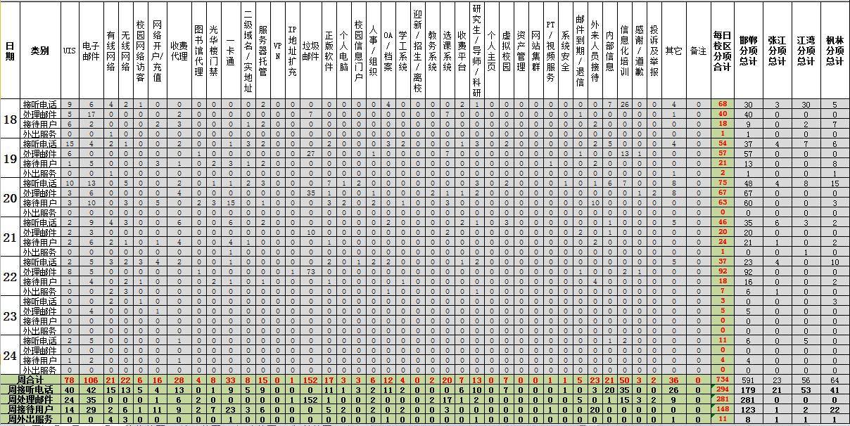 运行服务值班基本数据如下所示:
