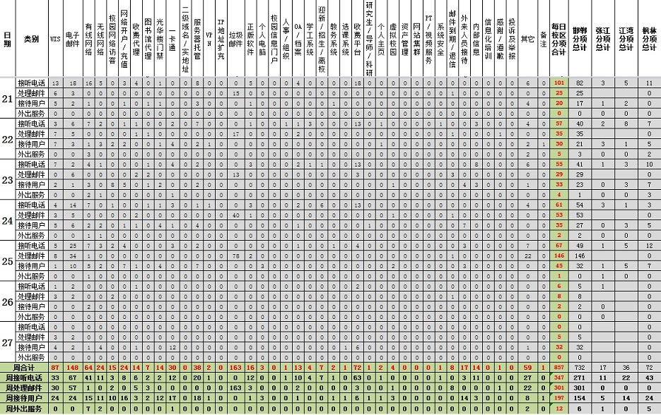 运行服务值班基本数据如下所示: