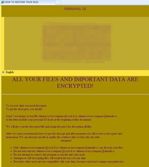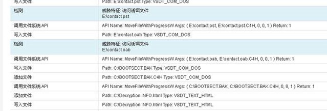 首先,病毒通过硬编码字符串还原出RSA公钥,私钥在病毒作者手中。接下来,病毒新生成RSA密钥对,其中的RSA私钥使用还原出的RSA公钥进行加密,然后生成personalID写入%public%目录下的一个文件中。随后病毒针对每个文件生成随机UUID,作为DES算法的密钥对文件进行加密。加密完成后,病毒会将对应的UUID使用生成的RSA公钥进行加密,连同personID一起写入对应加密文件的末尾。
