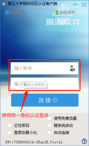 3.输入复旦统一身份认证的用户名和密码,点击连接。