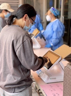 自学校进入准封闭管理以来,顺应疫情防控形势的不同需要,校内师生的供餐制度进行了多轮的革新。根据邯郸、江湾、张江、枫林的不同情况,目前四校区七个食堂实行着不同的供餐方案,师生用户通过“订餐小程序”订餐后,信息办统计分发数据,再由志愿者配送或师生现场刷卡取餐的模式来保障每一顿的配餐。