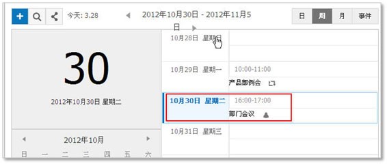 在日程表中,就可以马上看到刚刚创建的新会议邀请,如图所示: