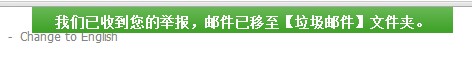 点击目标意见邮件,选择(这是垃圾邮件)会有3项提示:垃圾邮件。违法邮件。其他邮件。点击确定之后,系统会根据用户的选择会有回复提示。